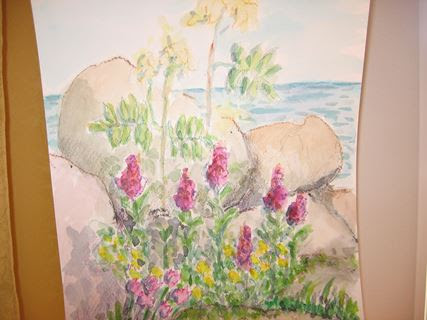 Ja mä sain vielä ihan speciaalimaalauksen: Rantakukkia, 24.7.2015